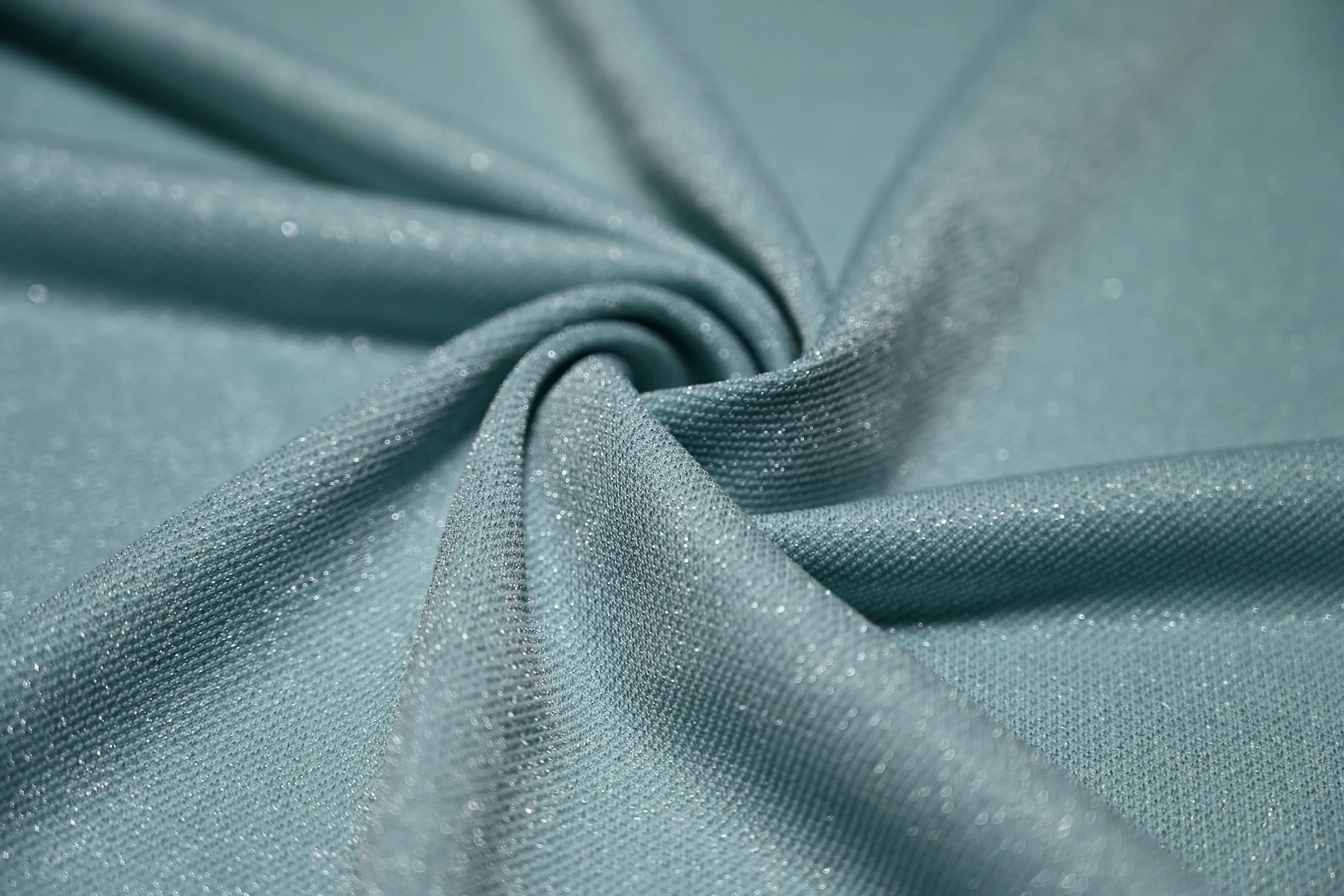 A soft viscose foundation combined with stretch and a high proportion of single-covered silver yarn for a refined, fashion-driven metallic look.